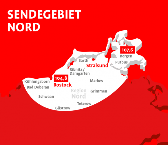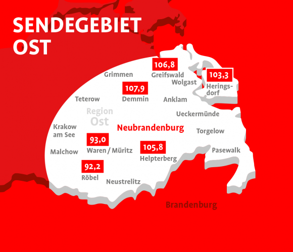 Ihre Radiowerbung kann in 3 unterschiedlichen Regionen oder landesweit in M-V ausgestrahlt werden: